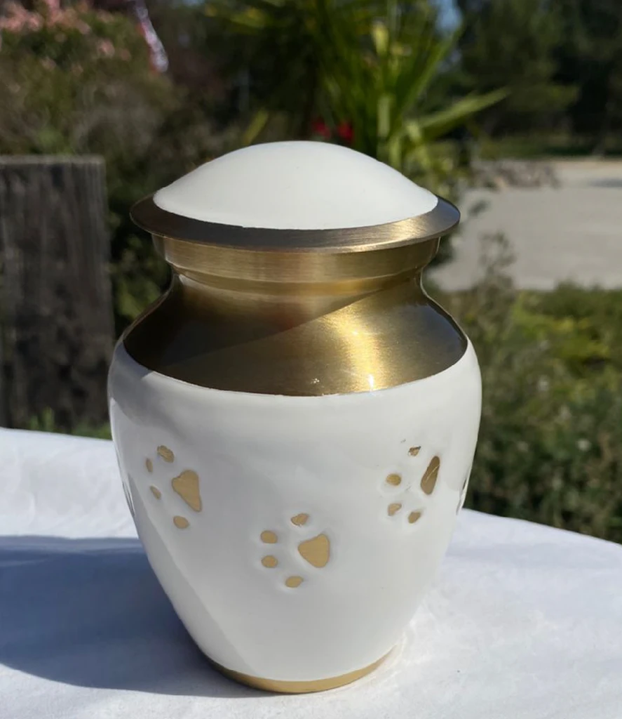 Incluimos una medalla con el nombre, fecha de nacimiento y fallecimiento, junto a una imagen o silueta de tu mascota. Un detalle eterno que acompaña su memoria.